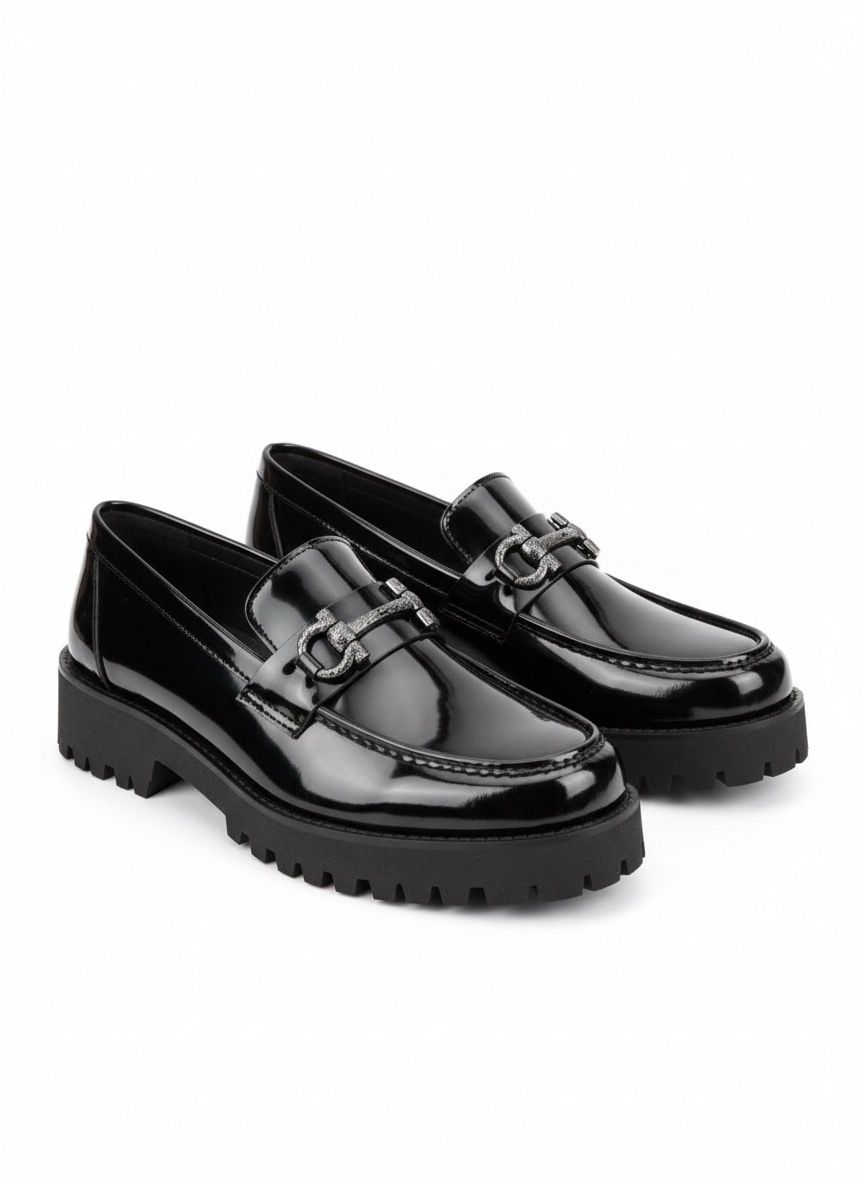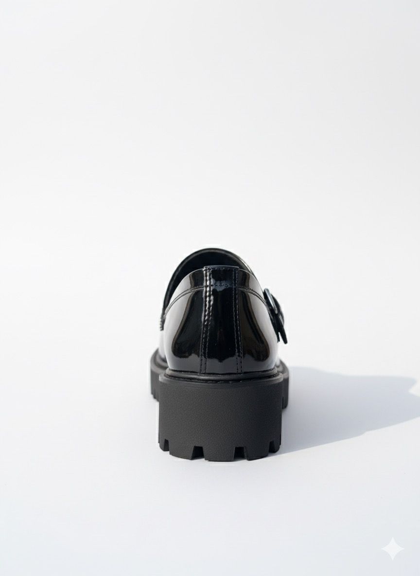 Description. Sleek black patent Faux leather Shoes with a Imported High Sole with silver Buckle. Perfect for adding a touch of sophistication to any outfit. Upper: Premium Faux leather Patent